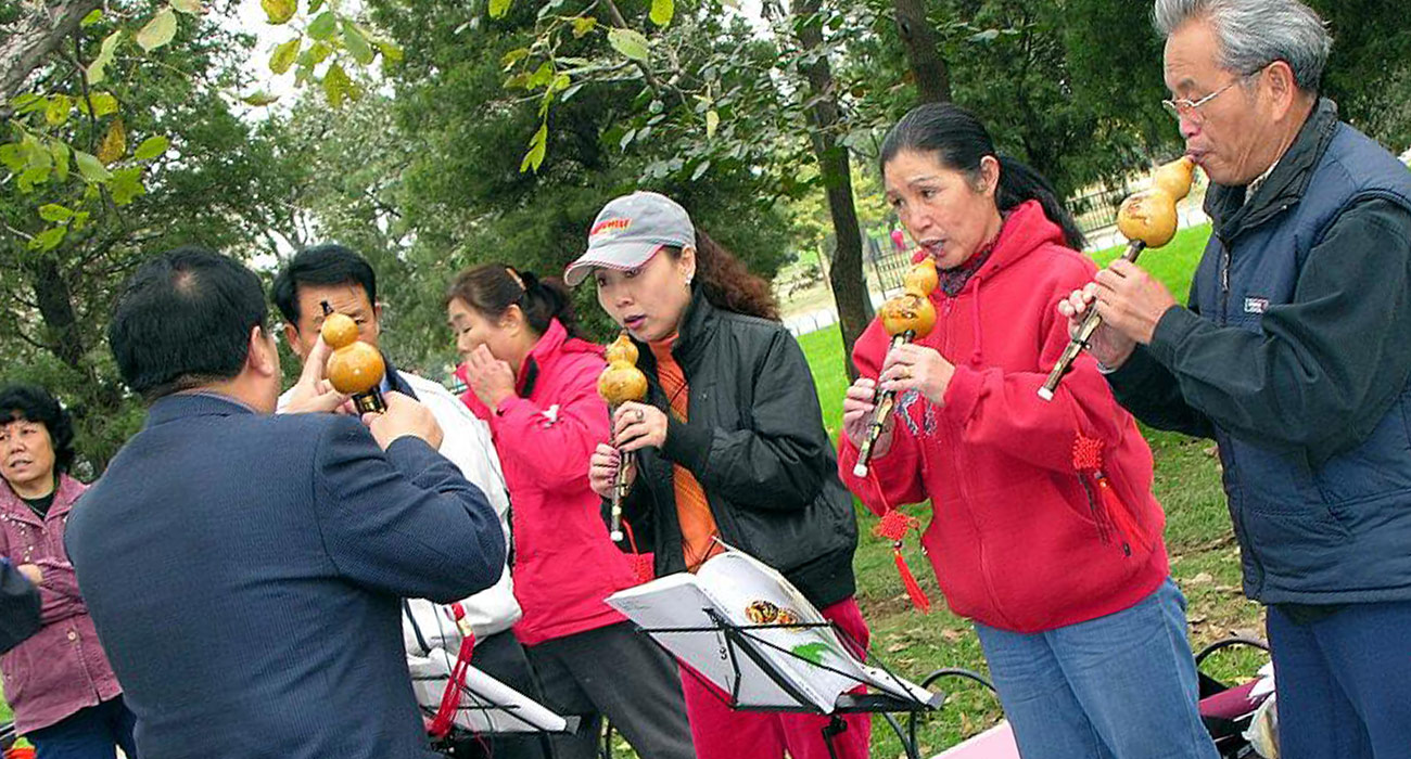 concierto callejero de Hulusi. Foto: Dennis G. Jarvis - China-6963, CC BY-SA 2.0, Wikimedia para «hulusi».